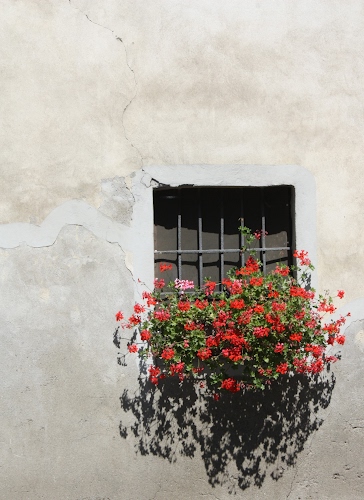 Incredibile come un semplice vaso di fiori possa trasformare un muro quasi decrepito.