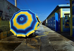 ombrellone giallo e blu