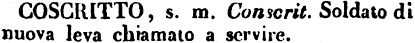 Coscritto - s. m. Conscrit. Soldato di nuova leva chiamato a servire. [immagine]